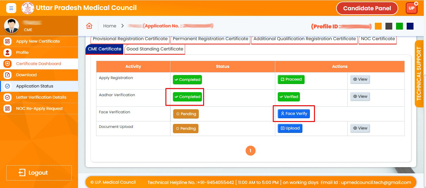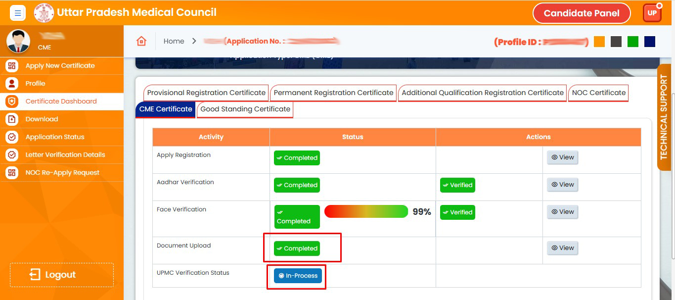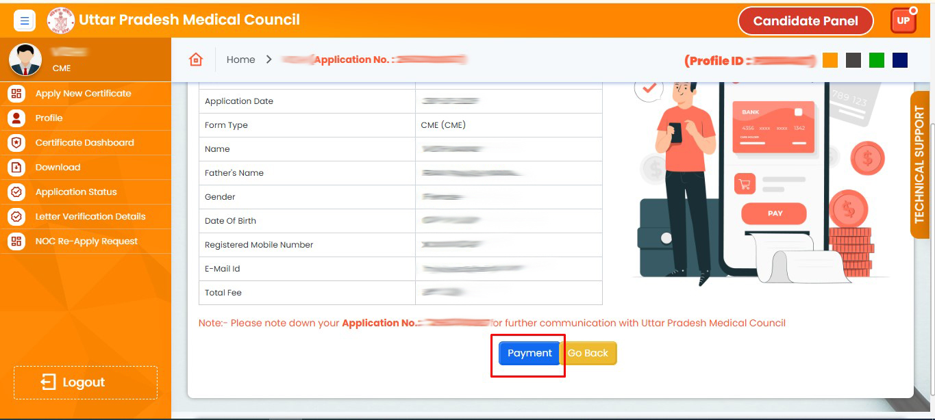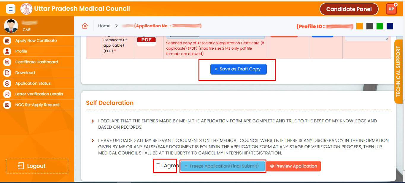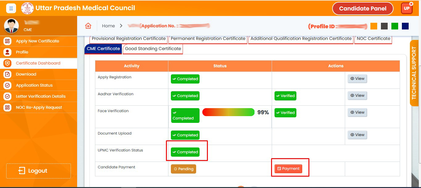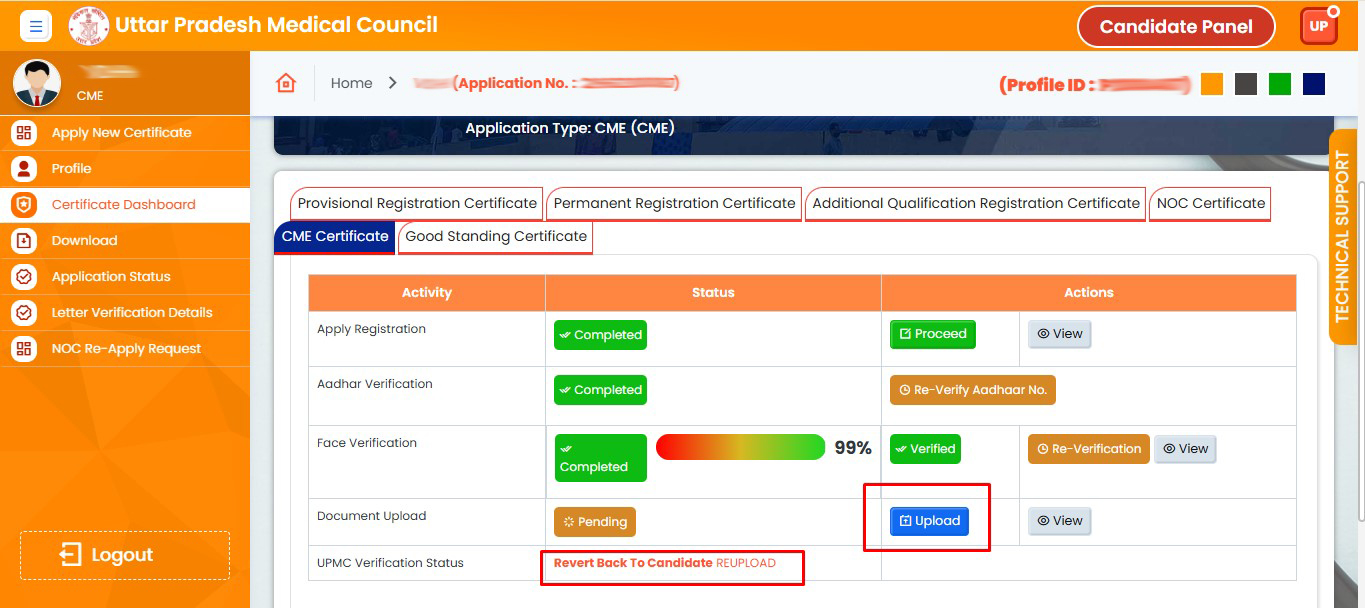 10. Select the CME option,Enter your Permanent Registration No,Registration Date and Date of Birth, and click Apply Certificate.