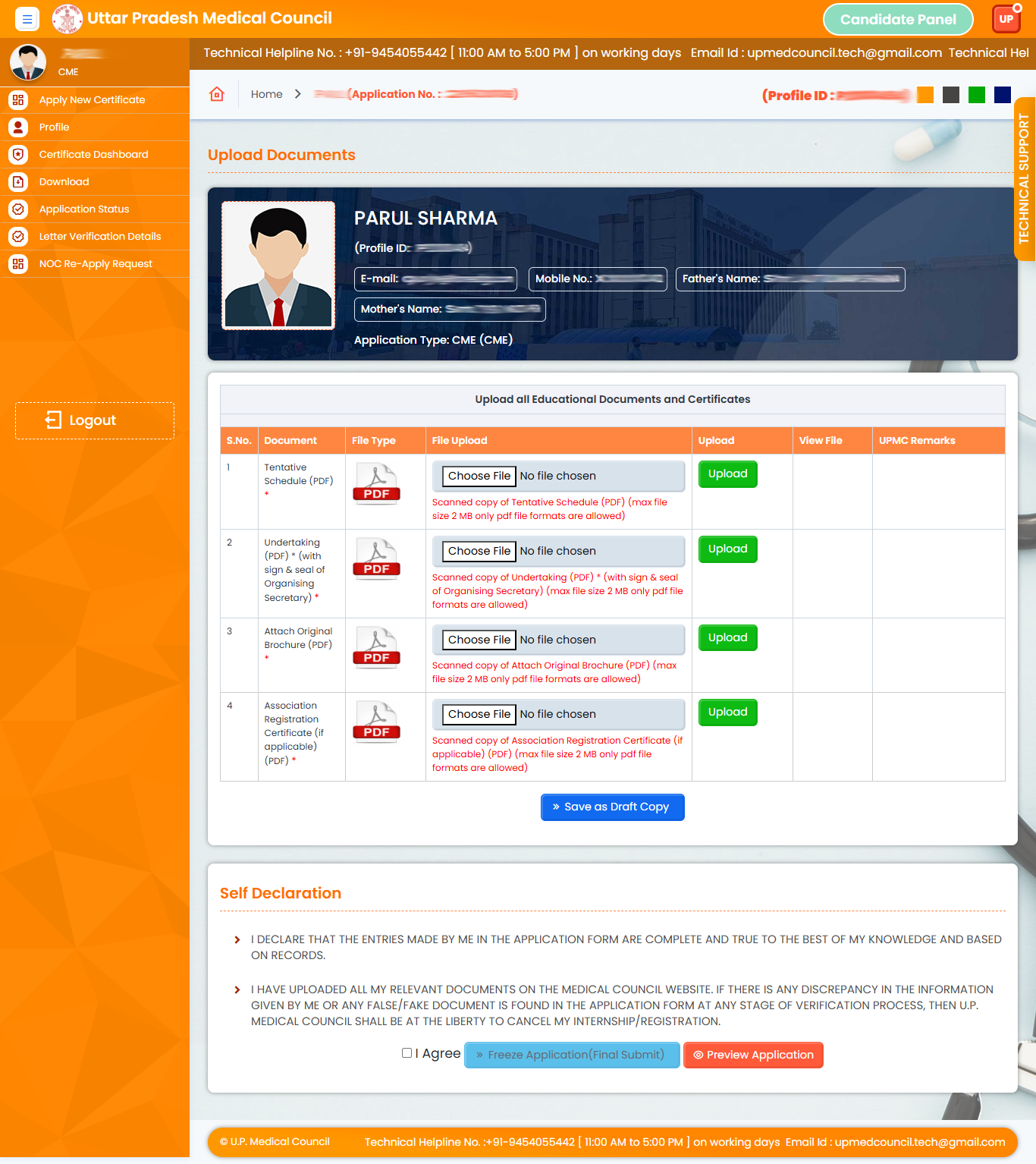 28. Now upload all your documents as per the given list. After saving the draft, you can Freeze Application (Final Submit) & Preview Application.