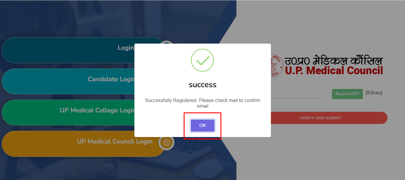 4. An OTP has been sent to your registered mobile number. Kindly enter the OTP and submit