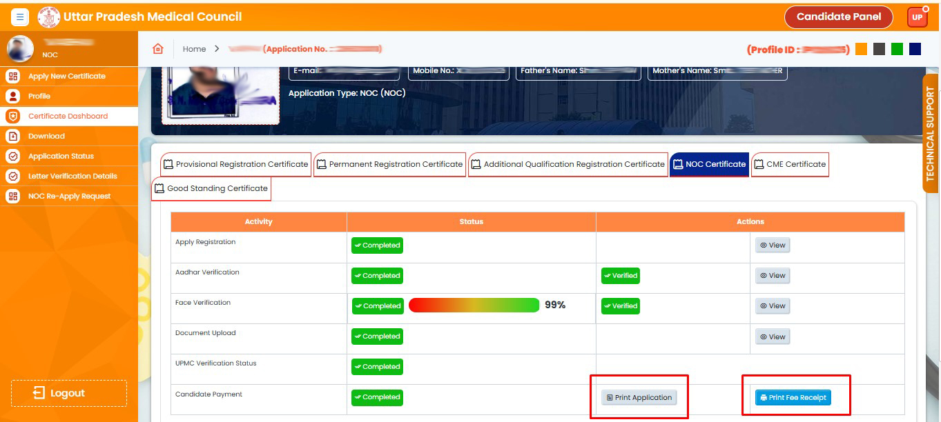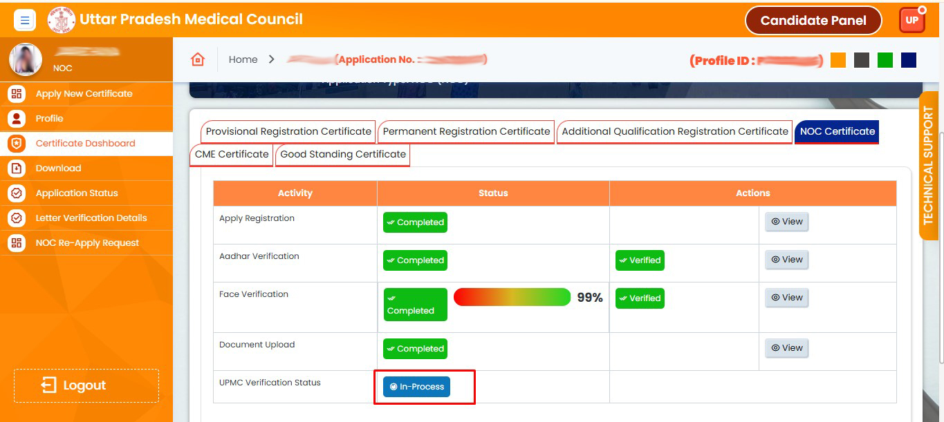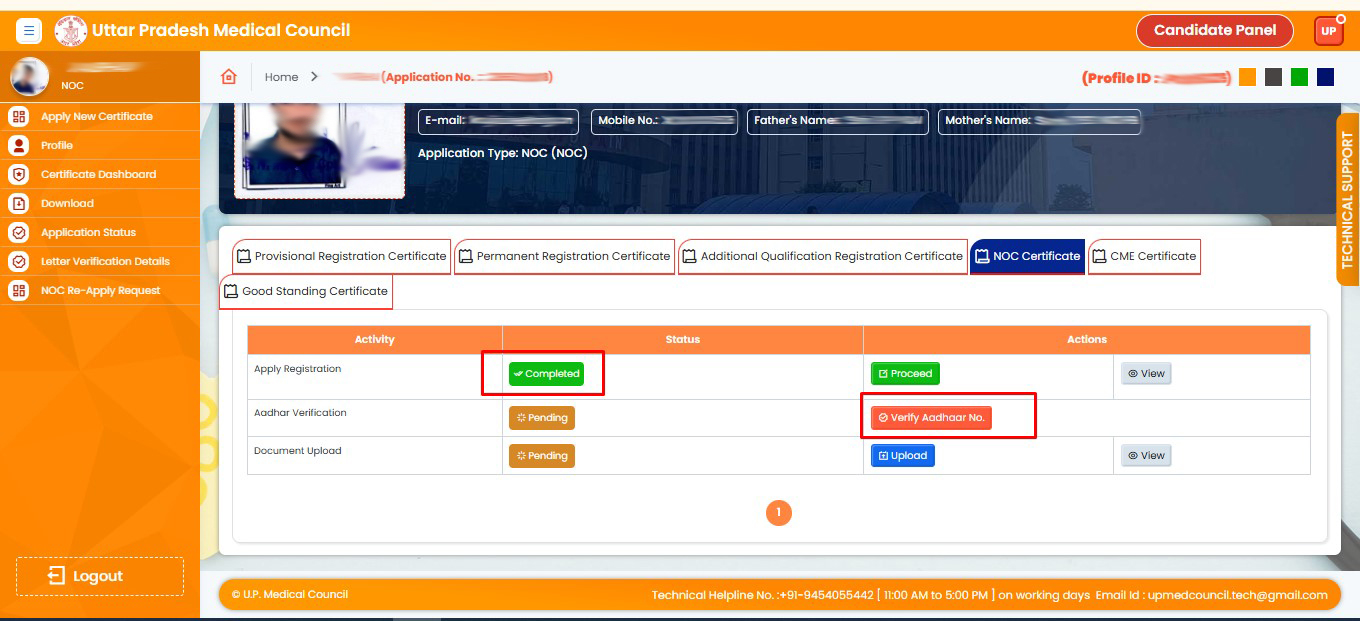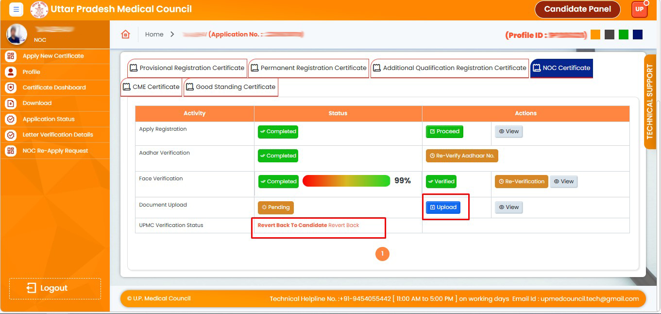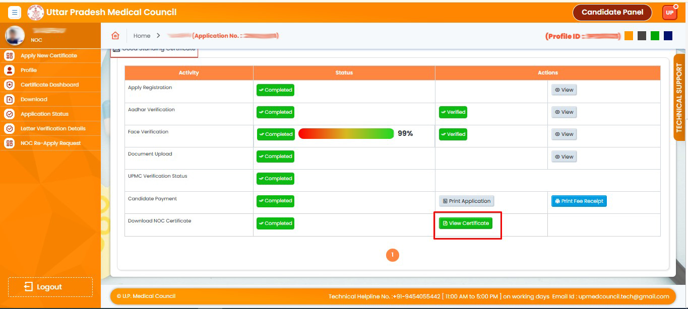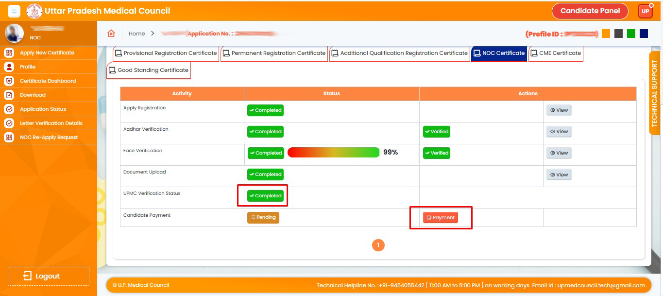 36. Your NOC Certificate has been sent by UPMC. You can now download it.