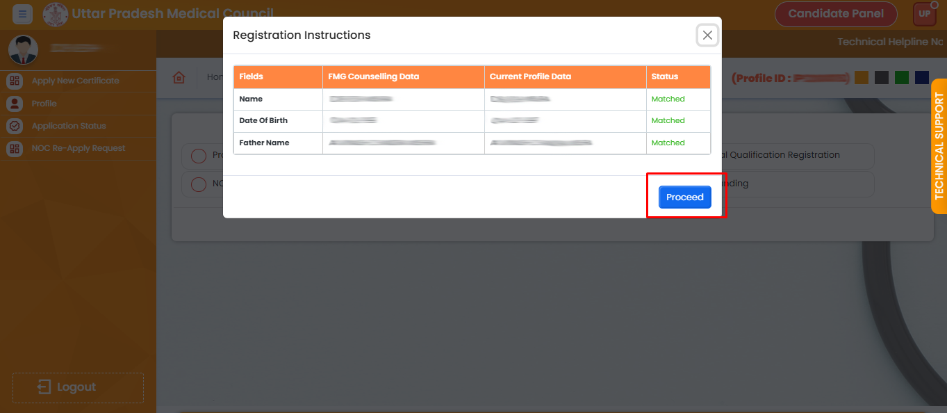 11. After Click Apply Certificate to open the popup and verify your details. If any information does not match, go to your profile and correct it.