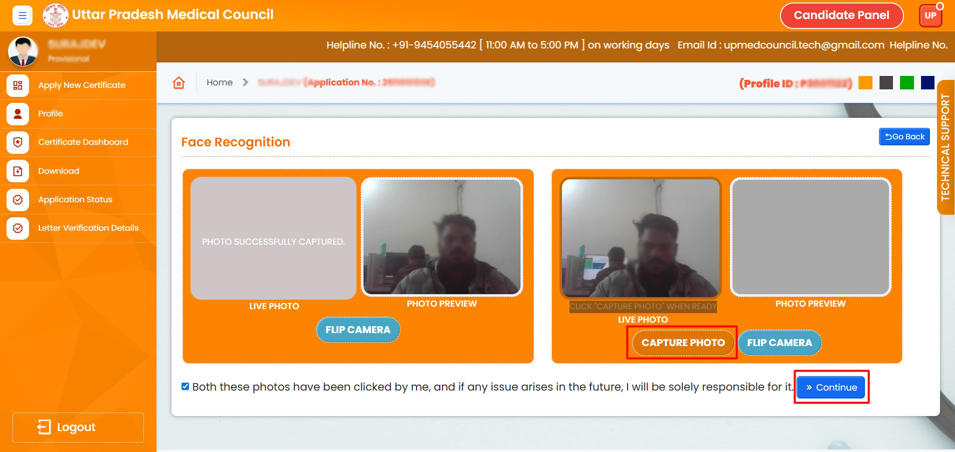 16. Click on "Capture Photo" and then click "Continue"