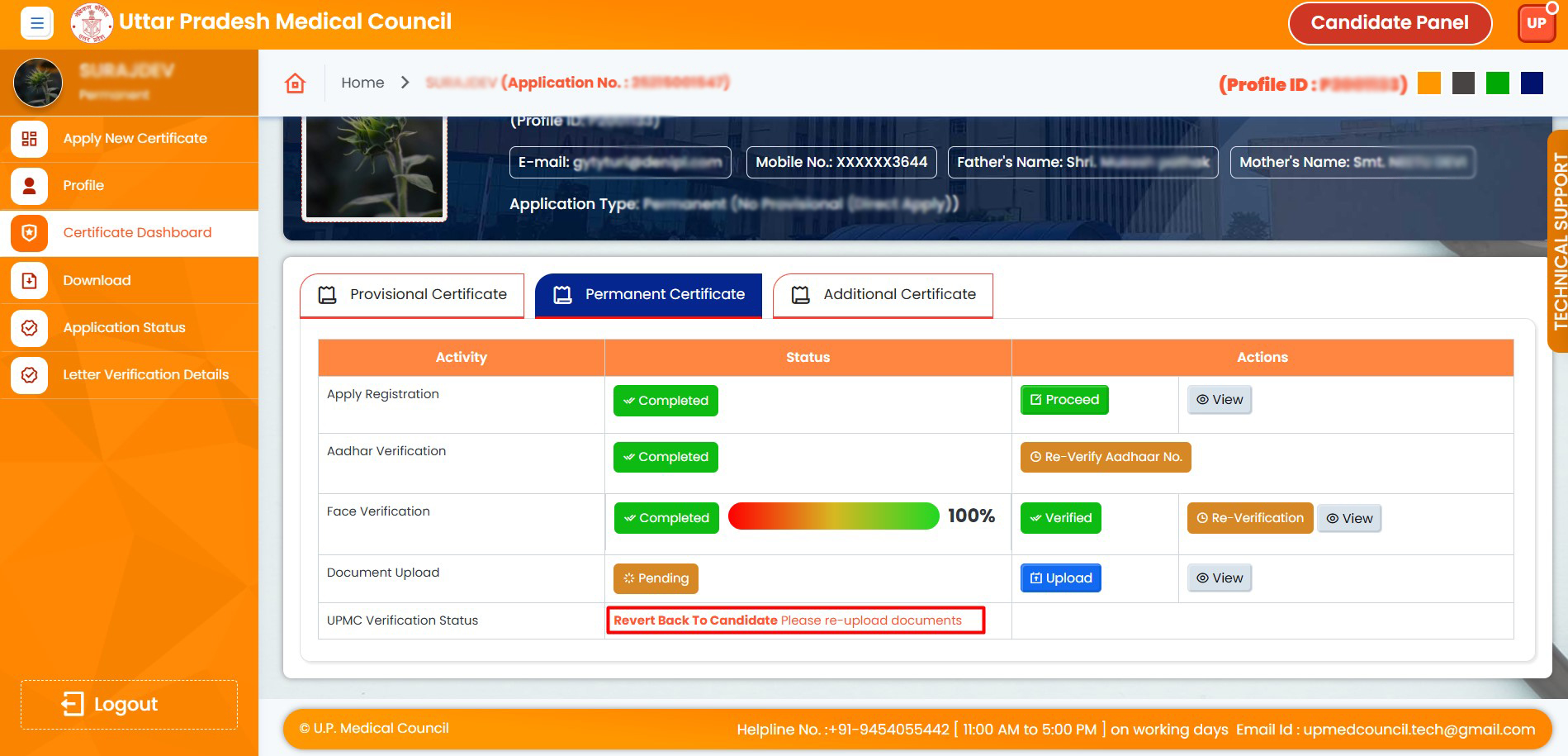 22. If there is an issue with your application or documents, your application will be returned by the UPMC. Please re-upload your documents.