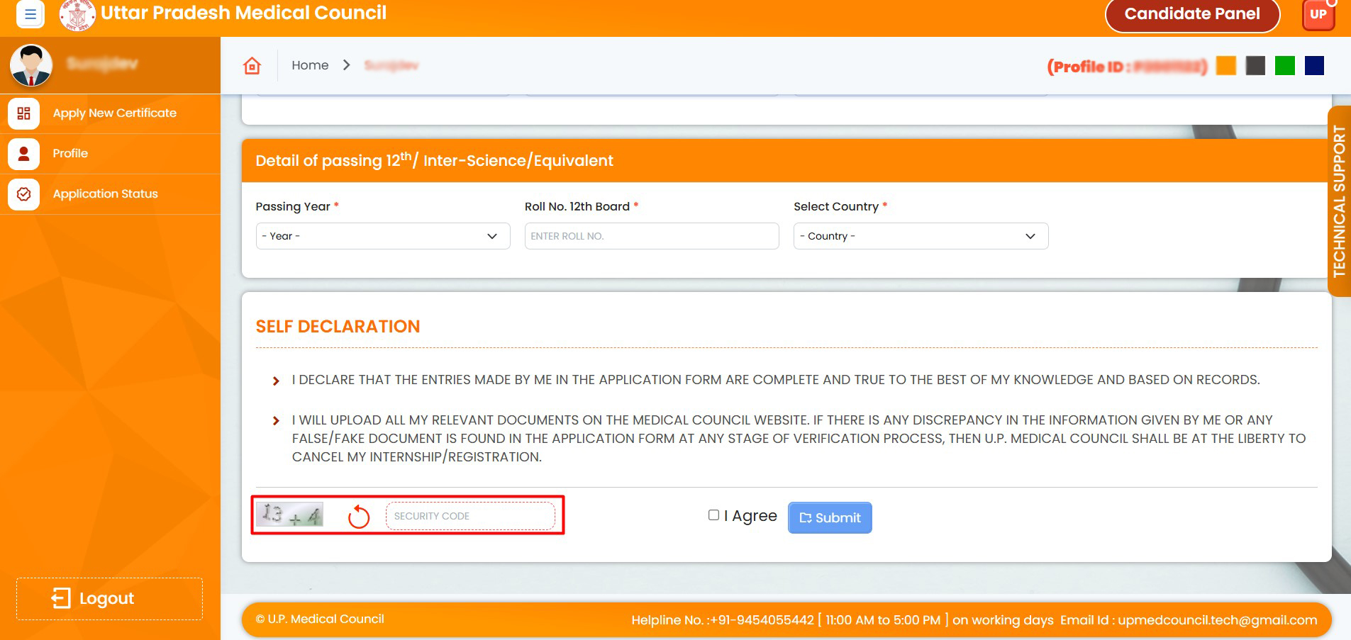 12. Fill all required fields, enter the correct captcha, agree, and submit